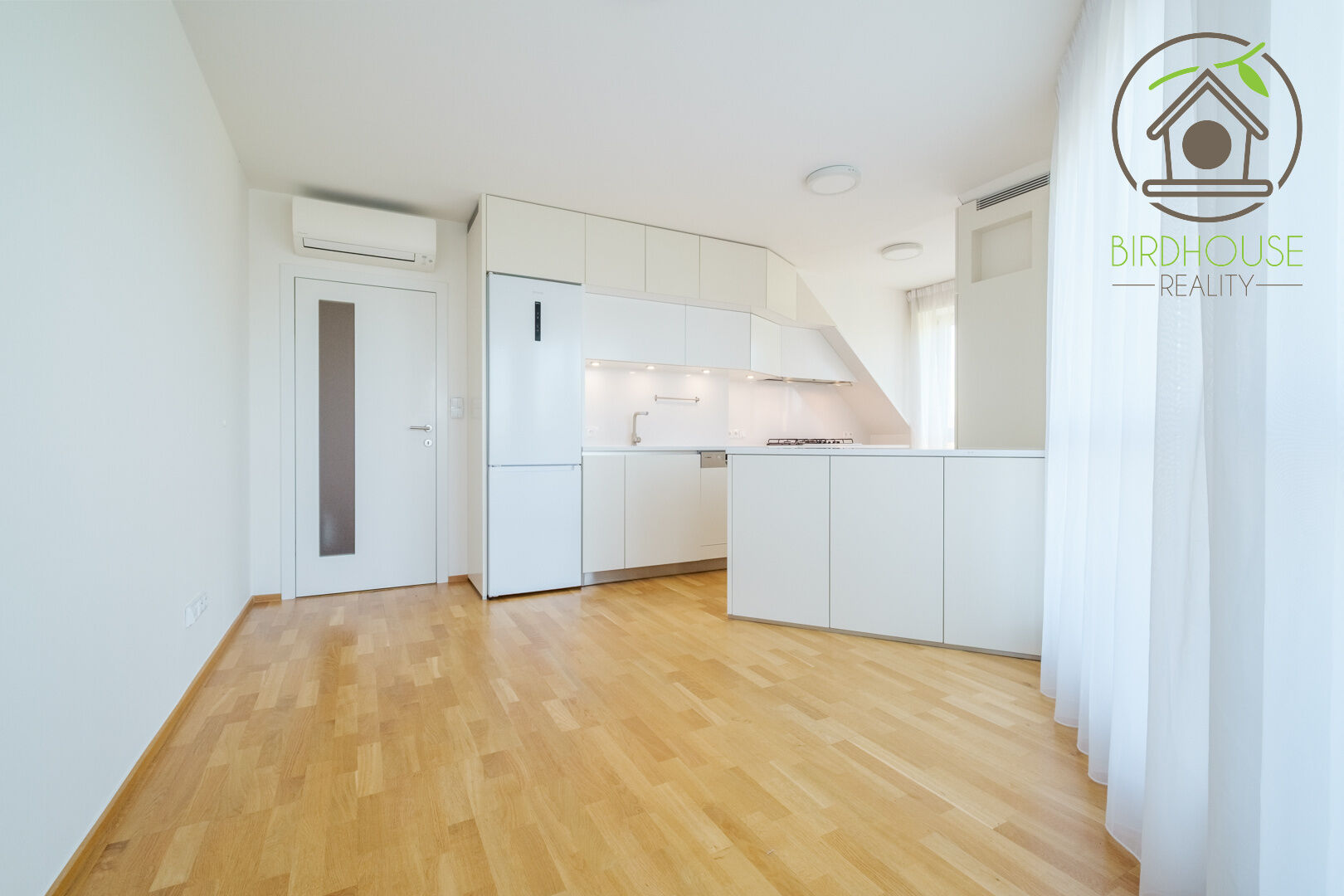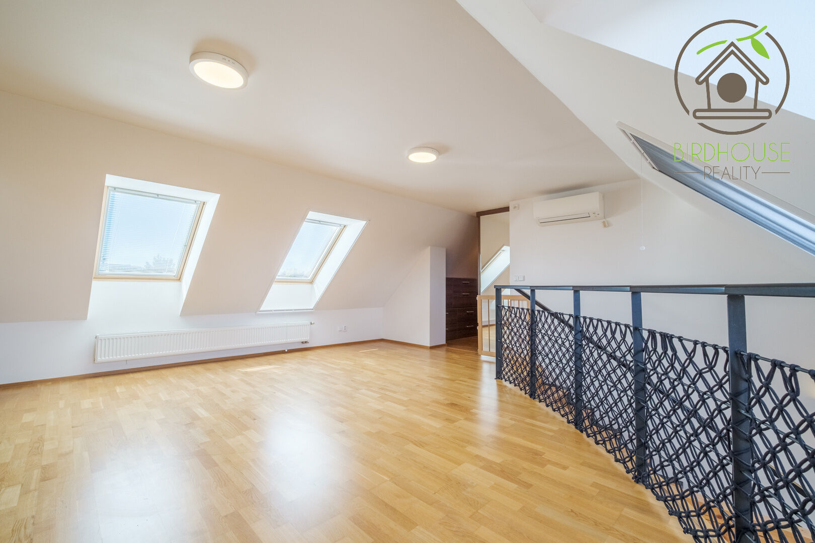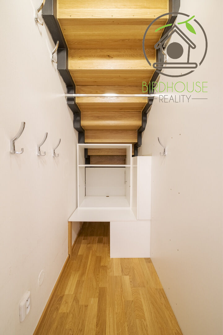 Patro o velikosti 31,76 m² pak nabízí soukromí v podobě galerie, kterou lze využít jako ložnici se šatnou (25,78 m²), a velkou koupelnu s vanou i sprchou (5,98 m²). Byt je vybaven třemi klimatizačními jednotkami, které jsou umístěny v obývacím pokoji, pokoji a kuchyni, což zajišťuje maximální komfort i v horkých letních dnech.
